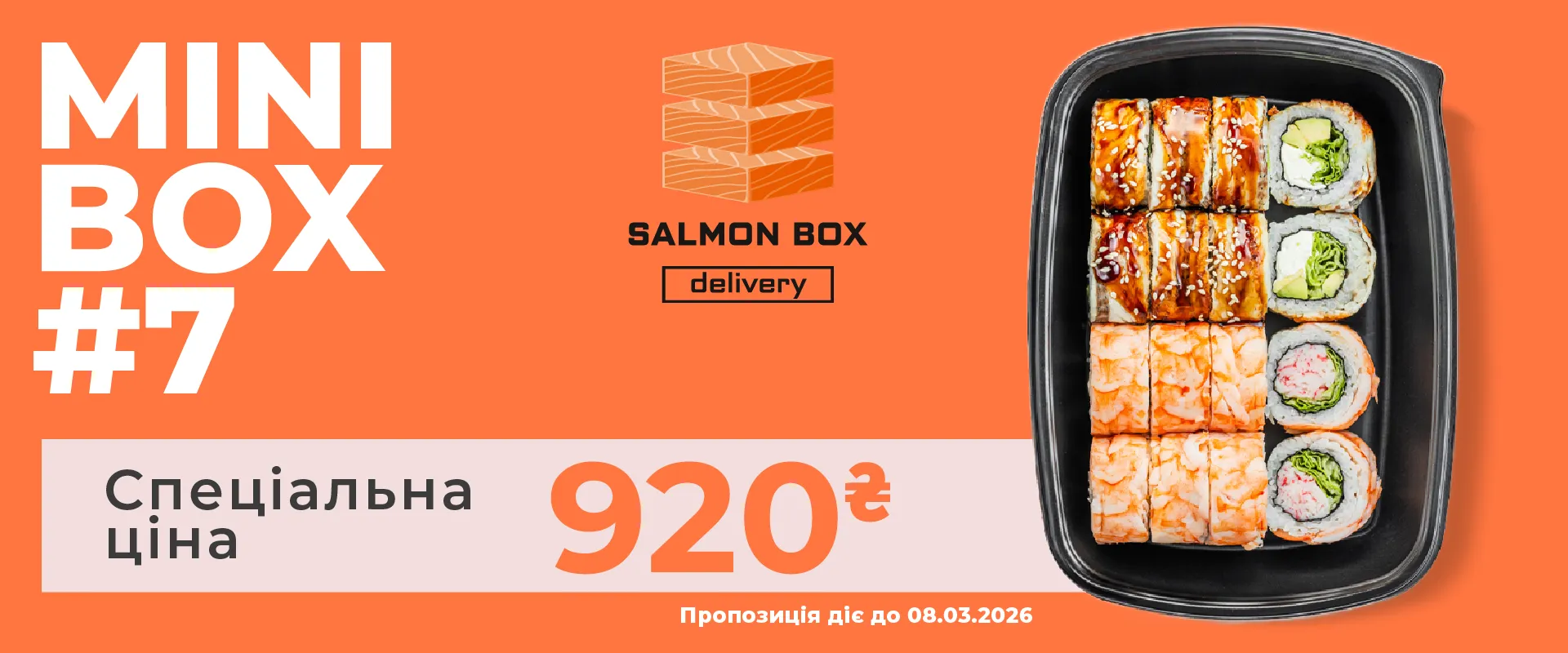 Кожен Salmon Box – це зручне рішення для будь-якої нагоди. Ми зміксували усе найкраще: сашимі, макі, нігірі, гункани та роли. У нашому меню – 8 міні та 8 максі боксів, які ідеально підійдуть як для сімейної вечері, так і для великого святкування.
