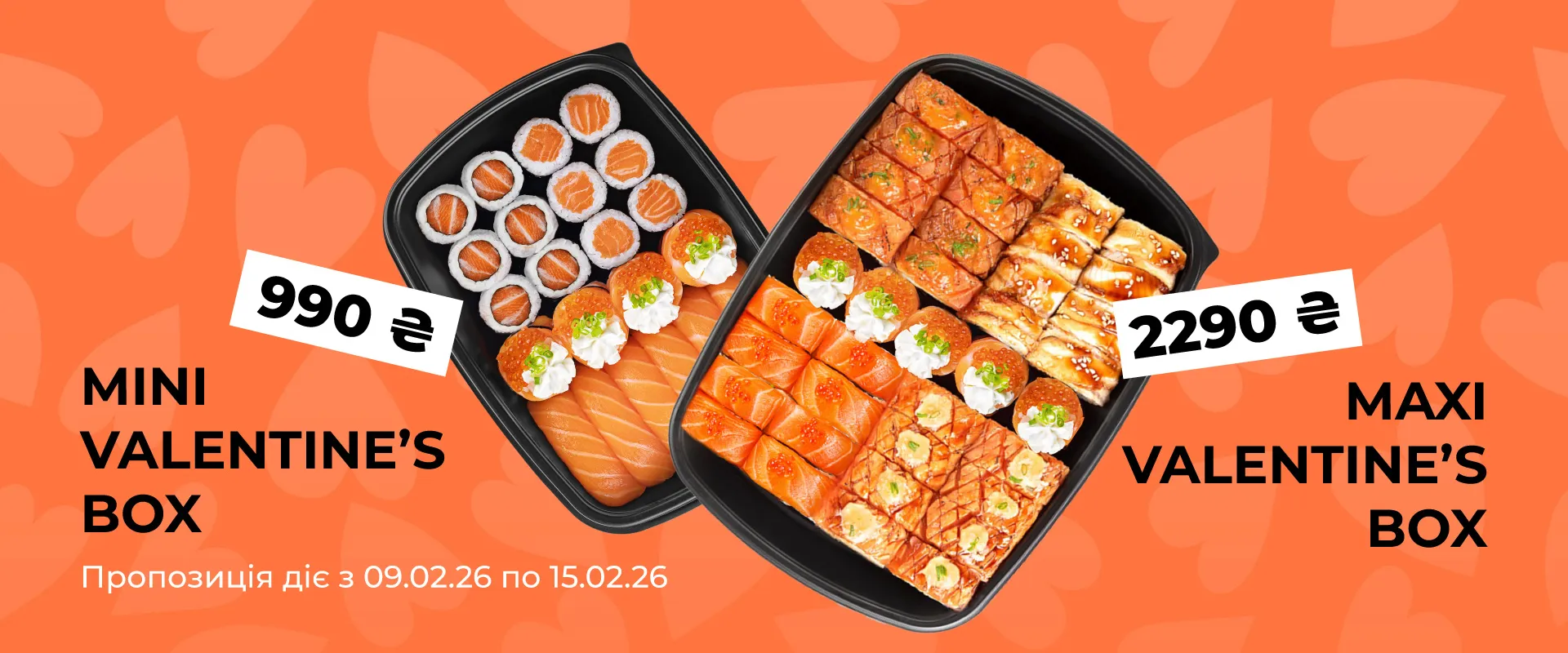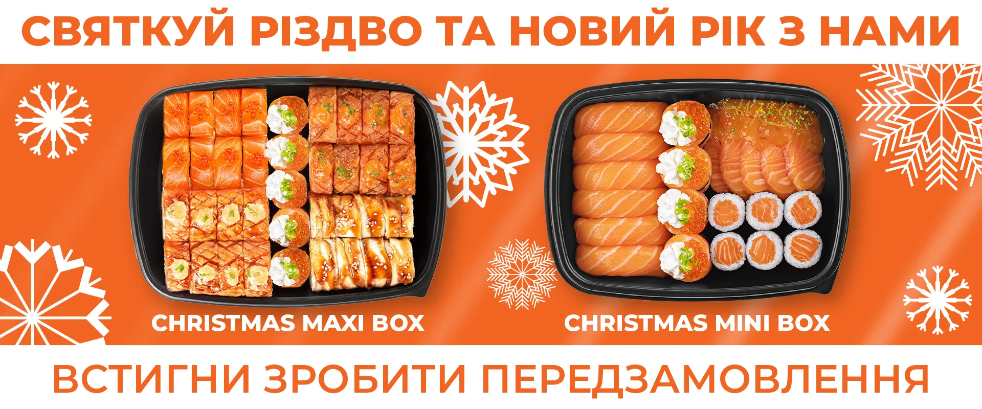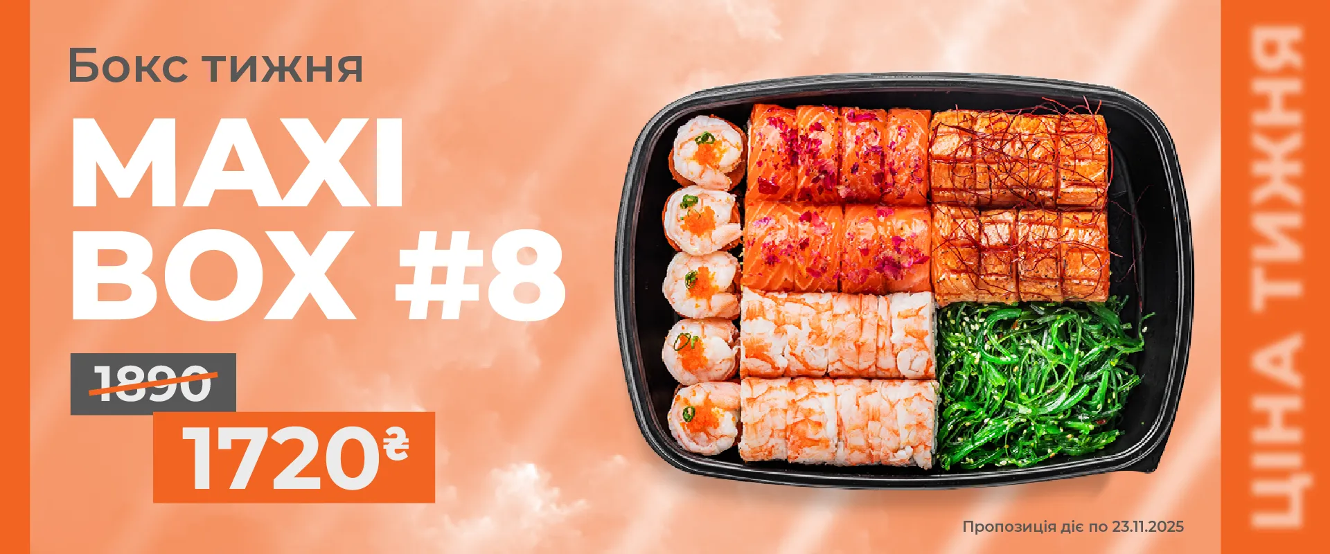 Наші топові бокси : 8 міні та 8 максі сетів, які включають усі хітові позиції меню.