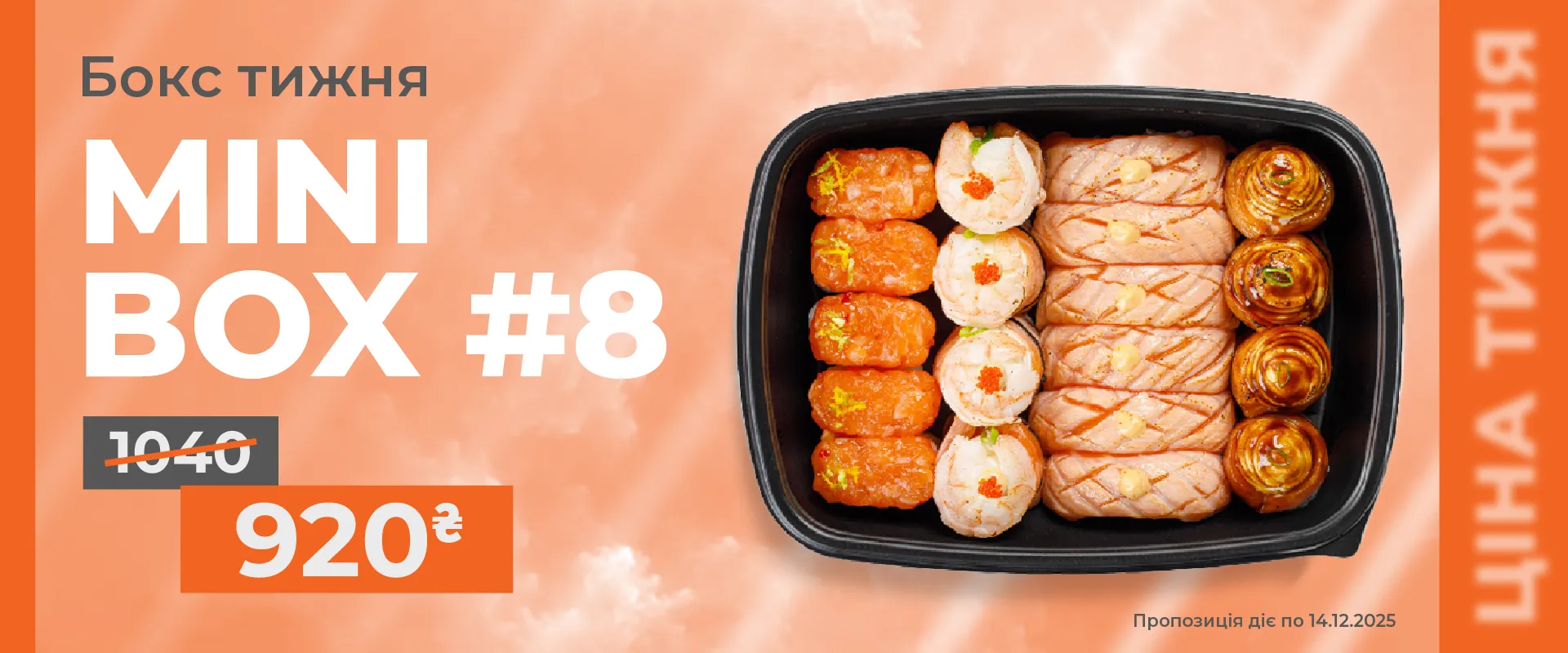 Наші топові бокси : 8 міні та 8 максі сетів, які включають усі хітові позиції меню.